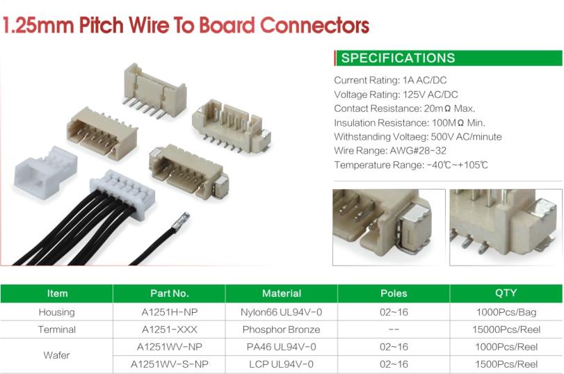 1.25mm Pitch Wire To Board Connectors